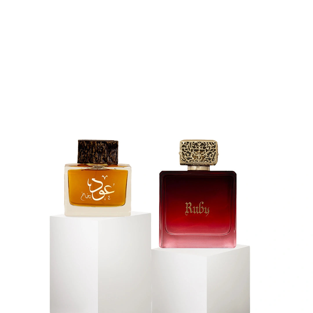 National elite collection brings together the harmony of oud and frankincense in Ruby and Oud Bakhakh Perfume.